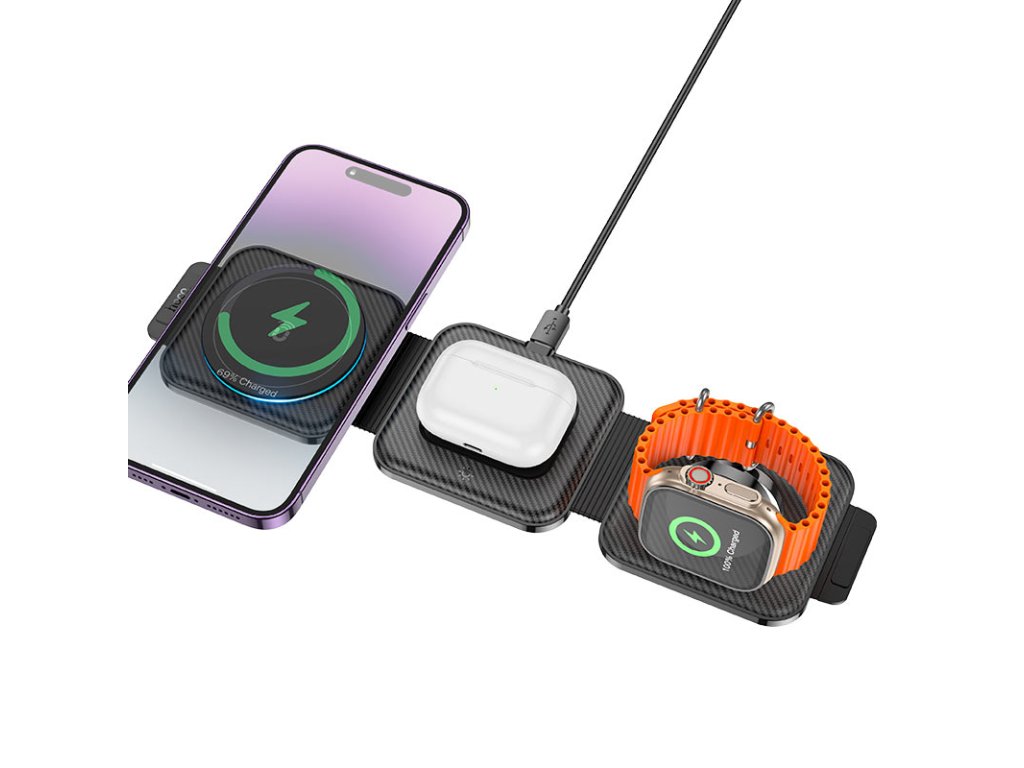 3v1 bezdrátová MagSafe nabíječka Černá - Hoco CQ4