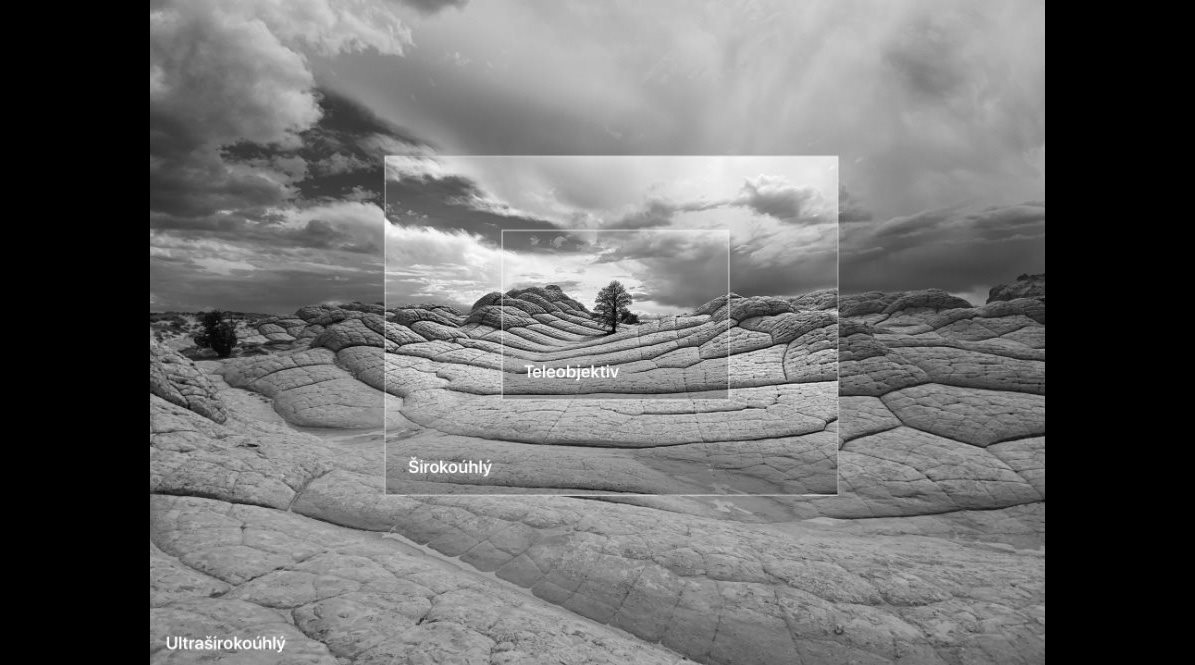 13mm ultraširoký fotoaparát – 120stupňové zorné pole. Čtyřikrát větší záběr.