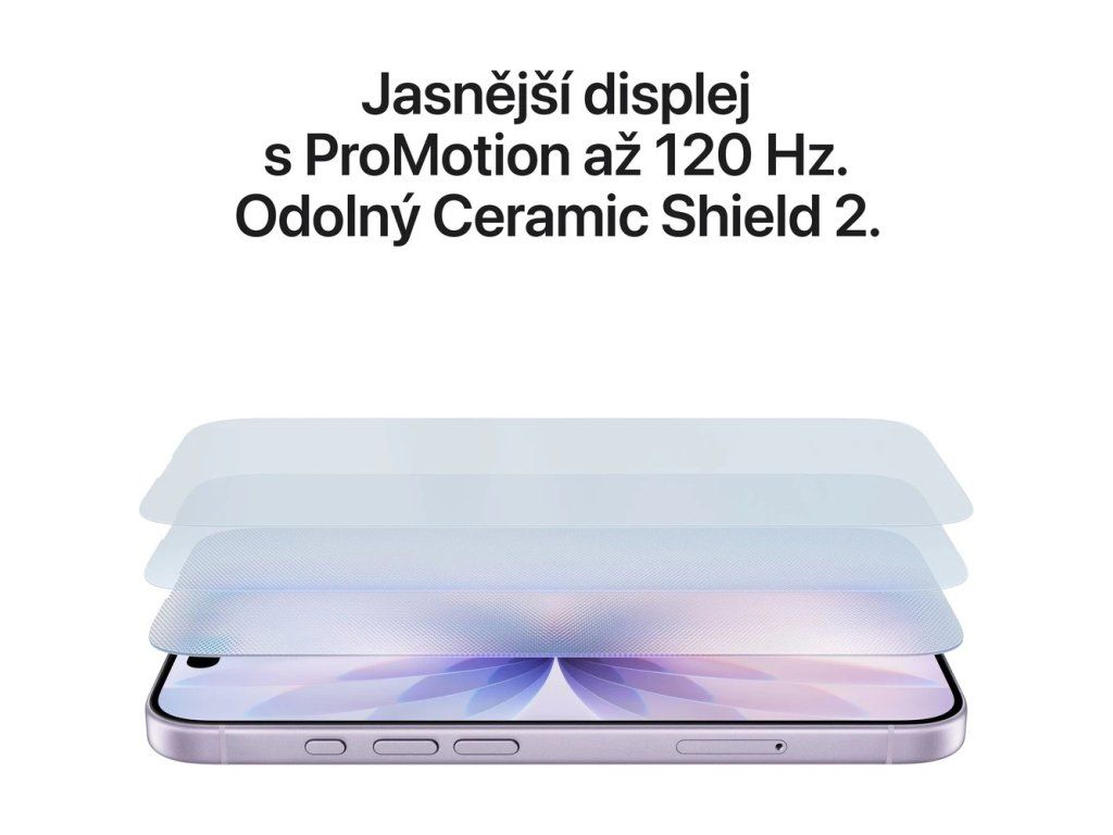 Seznam se s novým iPhonem 17. Má zaoblené hrany, tenčí okraje a je vyrobený z odolných materiálů, jako je Ceramic Shield 2 na přední straně. Takže vypadá a dlouho bude vypadat skvěle. Na 6,3palcovém Super Retina XDR displeji uvidíš a uděláš ještě víc věcí, co tě baví. A díky ProMotion s adaptivní obnovovací frekvencí až 120 Hz si užiješ plynulejší skrolování a hry tě pohltí jako nikdy. Podívej, jak se umí otáčet.